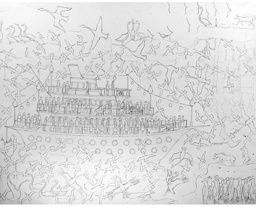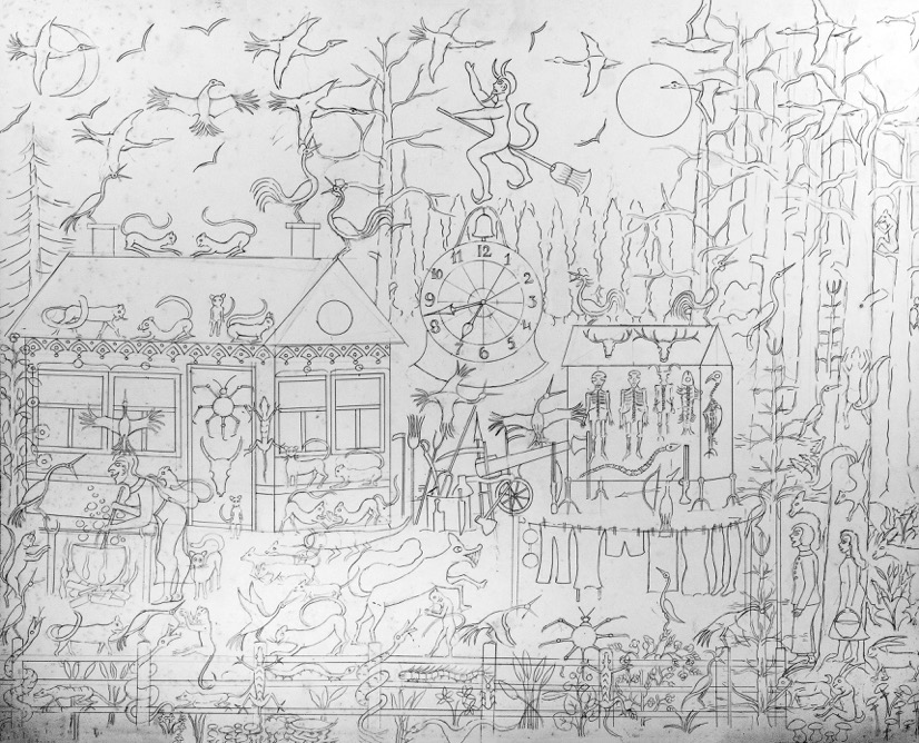 There are 20 drawings. It is likely that George planned to paint these pictures, as they were drawn until he became ill and passed away. Though that he let them accumulate instead of completing one before starting another suggests that he found primary pleasure in the drawing/ images.